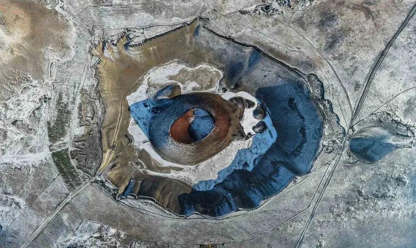Konya'nın Karapınarında Karla Kaplanan Meke Gölü Göz Alıcı Manzara Oluşturdu