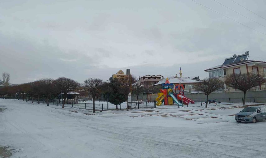 Konya'nın Yunak ilçesinde mevsimin ilk karı ilçeyi beyaza bürüdü