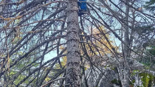 Konya Seydişehir'de sonbaharda ladin ağaçlarının yüksek kesimlerine tırmanan mantar toplayıcıları, doğal istiridye mantarını toplamak için riskli alanlara ulaşıyor.