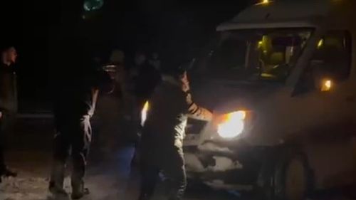 Kop Dağı Geçidi’nde etkili olan yoğun kar ve tipi nedeniyle ağır tonajlı araçlar ve birçok araç buzlanma nedeniyle ilerleyemedi; vatandaşlar halatla yardım etti.