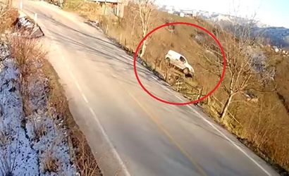 Kaza anı, bölgede bulunan bir evin güvenlik kamerasınca kaydedildi. Kayıtlarda, virajı dönen aracın hızla yoldan çıkarak fındık bahçesine doğru yaklaşık 3 saniye boyunca uçarak devrildiği görülüyor. Görüntüler, aracın yoldan çıkış anını ve düşüşü net biçimde belgeledi.