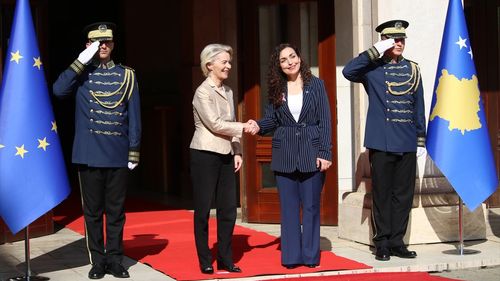 Kosova Cumhurbaşkanı Vjosa Osmani, Priştine'de Ursula von der Leyen ile görüşmesinde AB'nin Kosova'ya uyguladığı cezai tedbirlerin kaldırılmasını talep etti.