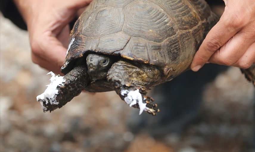 Muğla'nın Köyceğiz ilçesinde orman yangını sırasında kurtarılan kaplumbağa, tedavi altına alındı. Orman yangınında UMKE ekiplerce kurtarılan kaplumbağa, bölgede güvenli alana getirildi. UMKE ekipleri tarafından bir süre su verilen ve üzerine su dökülen kaplumbağaya yanıkları için krem tedavisi uygulandı.