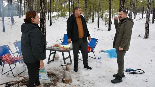 Köyceğiz Sandras Dağı'nda kar keyfi: Kaymakam Mert Kumcu vatandaşlara katıldı