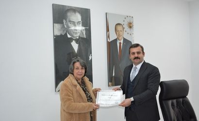 Bu yıl görev süresi sona eren mütevelli heyeti üyesi Hüsniye Berkul'a, yürüttüğü çalışmalardan dolayı teşekkür belgesi takdim edildi.