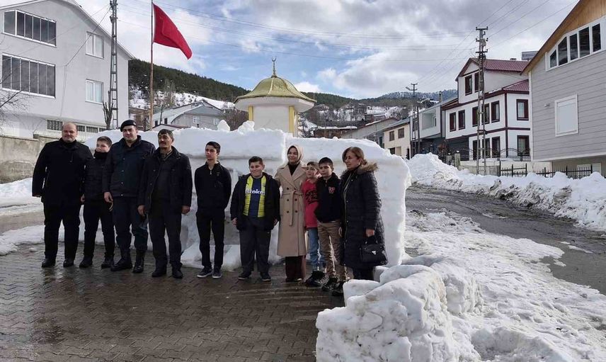 Köydeki kardan maketler ilgi çekiyor: Kız Kulesi sonrası kardan Sivas Valiliği maketi de ziyaretçi ağırlıyor