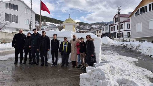 Köydeki kardan maketler ilgi çekiyor: Kız Kulesi sonrası kardan Sivas Valiliği maketi de ziyaretçi ağırlıyor