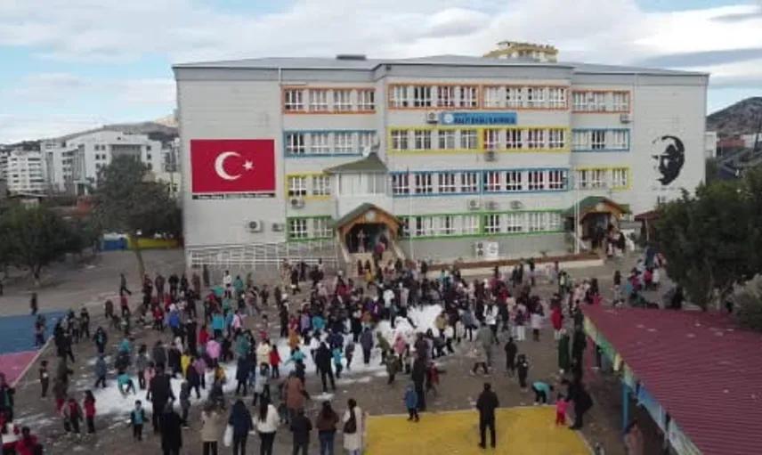 Kozan'da okula getirilen kar, öğrencilere yarıyıl öncesi hediye oldu