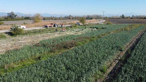 Adana Kozan'da 150 dönümlük alanda pırasa hasadı başladı; dönüm verimi 5-6 ton, tarlada kilogram fiyatı 20-22 TL. Üreticiler işçilik maliyetlerinden şikayetçi.
