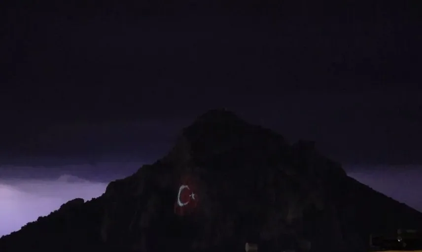 Ardışık şimşeklerin kale silueti ve bayrağın renkleri üzerindeki etkisi, bölge manzarasının gece boyunca farklı bir boyut kazanmasına neden oldu.