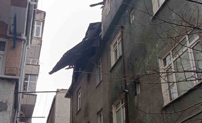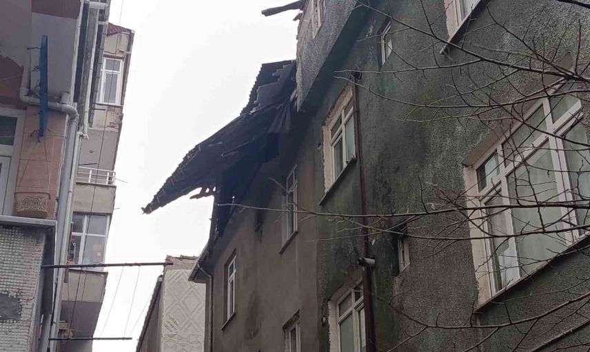 Küçükçekmece'de fırtına sonucu çatı parçaları komşu binaya savruldu