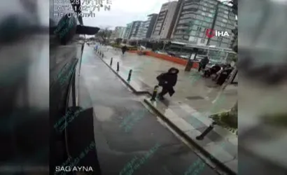 Otobüs durağına yanaşmadan duran İETT otobüsünden inen kadın yolcuya, o sırada seyir halinde olan bir motosikletin çarptığı belirtildi. Çarpmanın etkisiyle kadın metrelerce sürüklendi. Kaza anı, çevredeki güvenlik kameralarına anbean yansıdı.