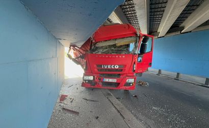 Küçükçekmece'de kamyon alt geçide çarptı