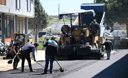 Güneşli iki günlük hava koşullarının sağlanmasıyla ekipler, planlanan süreyi değerlendirerek alana yaklaşık 2 bin ton sıcak asfalt serimi yaptı.