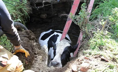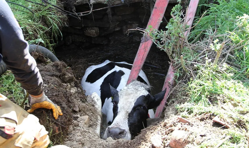 Manisa'nın Kula ilçesi Narınca Mahallesi'nde otlarken bir kuyunun içine düşen 7 aylık gebe inek, itfaiye ekipleri ve bölge sakinlerinin ortak müdahalesiyle kurtarıldı.