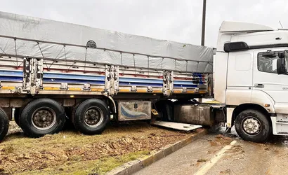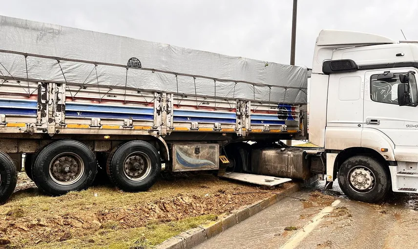 Manisa'nın Kula ilçesinde, yağışlı havanın etkisiyle kayganlaşan yolda sürücüsünün kontrolünü kaybettiği bir tır orta refüje çıktı. Olayda sürücü yaralanmadı.