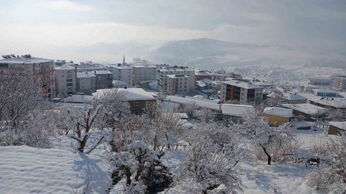 Diyarbakır’ın Kulp ilçesinde üç gündür süren kar yağışı sonrası ilçe merkezi buz tuttu; ağaçlar ve meyve bahçeleri yoğun kar altında kaldı.