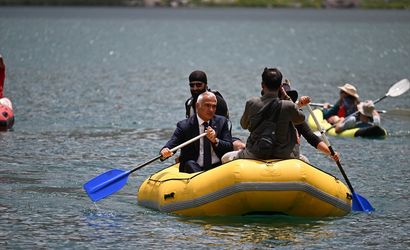 Kültür ve Turizm Bakanı Mehmet Nuri Ersoy, Hakkari'deki programları kapsamında Yüksekova ilçesinde İkiyaka Dağları'ndaki 3 bin 400 rakımlı Sat Buzul Gölleri'nin bulunduğu bölgeyi ziyaret etti. Bakan Gürsoy burada rafting botuna binerek kürek çekip, sporcularla buzul gölünde zaman geçirdi.