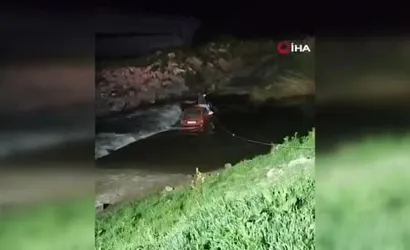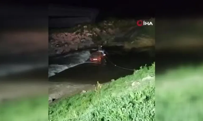 Develi Mahallesi yakınlarında meydana gelen olayda, dere yatağından geçmeye çalışan ve içinde iki kişinin bulunduğu araç dere ortasında kaldı. Araç üzerine çıkan vatandaşlar yardım çağrısında bulundu.
