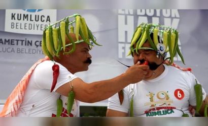 Bu yıl 25’inci kez düzenlenen Tarım ve Seracılık Festivali kapsamında 21 yarışmacı, 3 dakikalık süre içinde en çok acı biberi yemek için kıyasıya yarıştı. Cumhuriyet Meydanı’nda bu haftanın başında başlayan festivali, çeşitli etkinliklerle vatandaşları eğlendirdi. Festival kapsamında gerçekleştirilen acı biber yeme yarışmasının başlamasından hemen önce yerel sanatçı İbrahim Abay konser verdi.