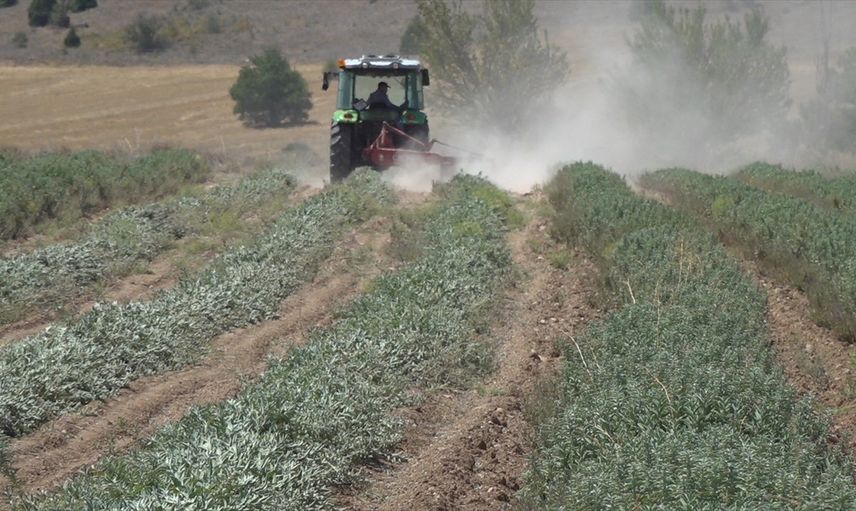 İlkbahar ve haziran döneminde yeterince yağış alamayan Burdur'da yetiştirilen Anadolu ada çayında verim, geçen yıla göre yaklaşık yüzde 60 azalırken çiftçiler, boyları yeterince büyümeyen ada çayının hasadında zorluk çekiyor. Bu yılki hasat döneminde boyları yaklaşık 30 santimetre olan ada çayları ancak yere yakın tamburlu traktörle biçiliyor. Tambur toprağa temas ettiğinden çiftçiler, tarlada sıcağın yanı sıra tozla da mücadele etmek zorunda kalıyor.