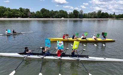 Edirne'de milli kürekçiler ve TED Edirne Koleji Kürek Kulübü sporcuları, Meriç Nehri'nde gerçekleştirdikleri etkinlikte çevre kirliliğine dikkat çekmek amacıyla pankart açtı.