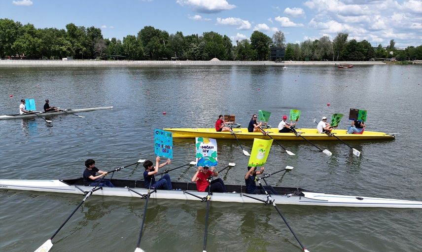 Çevre, Şehircilik ve İklim Değişikliği Müdürlüğü tarafından düzenlenen Çevre Haftası etkinliği kapsamında, Edirne'de kamp yapan kürek milli takımı ile TED Edirne Koleji Kürek Kulübü sporcuları, tekneleriyle Meriç Nehri'nin ortasında buluştu.