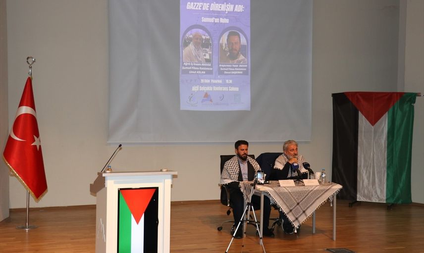 Gazze'ye insani yardım amacıyla yola çıkan ve İsrail güçlerince el konulan Küresel Sumud Filosu'nda bulunan Ağrılı iş insanı aktivist Umut Aslan ile araştırmacı yazar aktivist Davut Daşkıran, alıkonuldukları dönemde yaşadıklarını Ağrı'da düzenlenen konferansta aktardı.