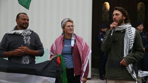 Küresel Sumud Filosu'ndaki Avusturyalı aktivistler Viyana'da Dışişleri Bakanlığı önünde protesto düzenledi