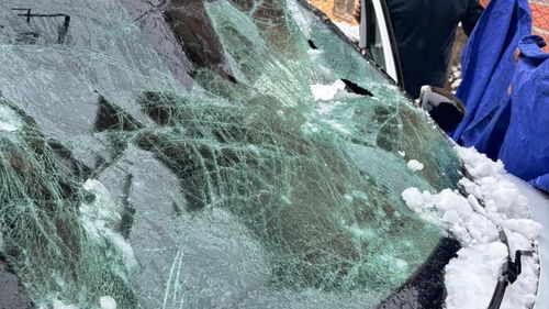 Siirt'in Kurtalan ilçesi Tekel Mahallesi'nde çatılardan düşen kar, park halindeki otomobilin ön camını kırıp tavanını çökertti; araç kullanılamaz hale geldi.