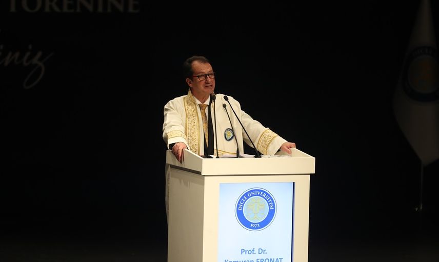 Dicle Üniversitesi Rektörü Prof. Dr. Kamuran Eronat (fotoğrafta), Dicle Üniversitesinin 15 Temmuz Kongre ve Kültür Merkezi'nde düzenlenen 2025-2026 Akademik Yıl Açılış Töreni'ne katılarak konuşma yaptı.