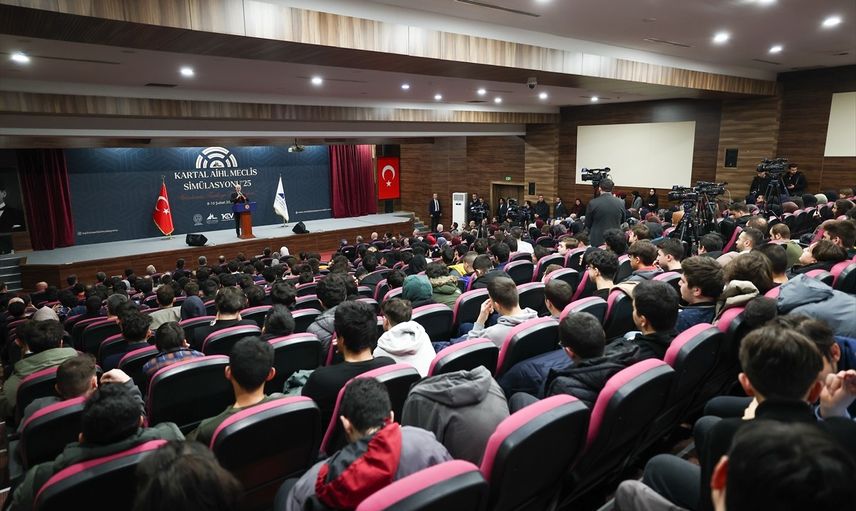 TBMM Başkanı Numan Kurtulmuş, Kartal Anadolu İmam Hatip Lisesi (AİHL) Meclis Simülasyonu programına katıldı. Kurtulmuş, burada öğrencilerle hatıra fotoğrafı çektirdi.