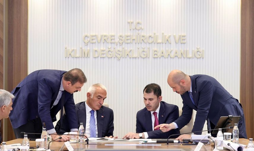 Çevre, Şehircilik ve İklim Değişikliği Bakanı Murat Kurum ile Kültür ve Turizm Bakanı Mehmet Nuri Ersoy 6 Şubat 2023'te meydana gelen Kahramanmaraş merkezli depremlerden etkilenen şehirlerdeki tarihi yapıların restorasyonu için bir araya geldi.