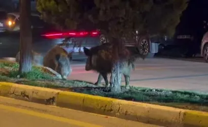 Kuşadası'nda domuz sürüleri şehir merkezinde görülüyor