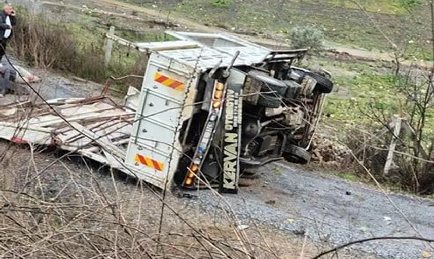 Kuşadası'nda kamyonet tali yola devrildi: 1 ölü, 1 ağır yaralı