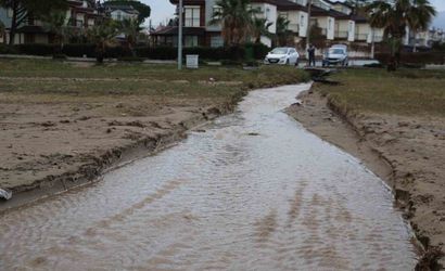 Kuşadası'nda sel suları denizin rengini değiştirdi