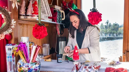 Kuşadası'nda El Heykeli önünde kurulan yılbaşı pazarı, süs, hediyelik ve lezzetlerle haftanın 7 günü 13.00-22.00 saatleri arasında ziyaret edilebilecek.
