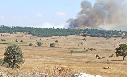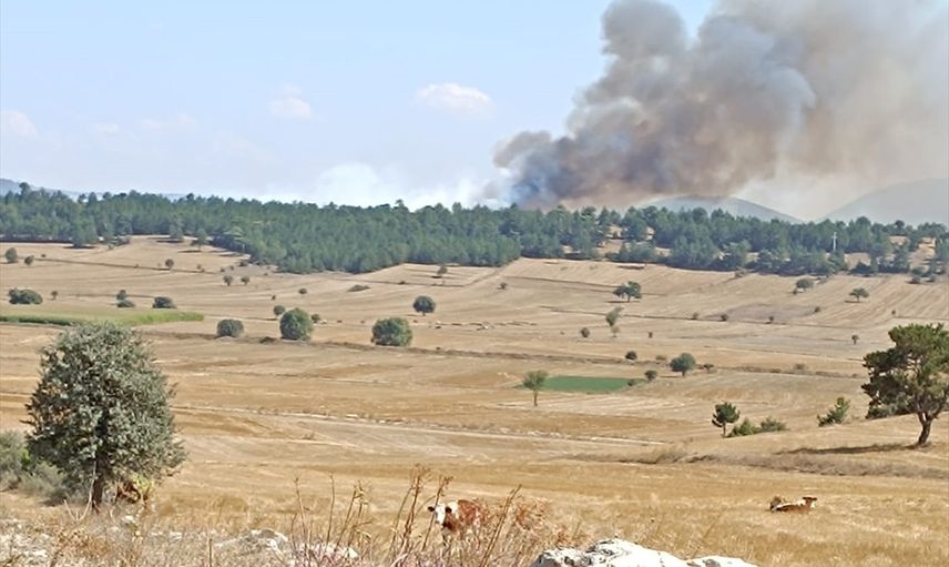 Kütahya'nın Aslanapa ilçesinde, tarım alanlarında başlayan anız yangını, kısa sürede ormanlık bölgeye yayıldı. Yangının nedeni henüz belirlenemedi.