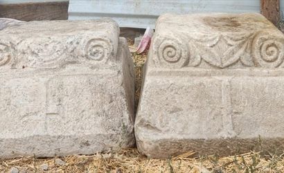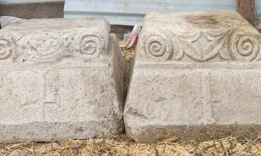 Kütahya'da Bizans dönemine ait 4 mermer sütun başlığı ele geçirildi