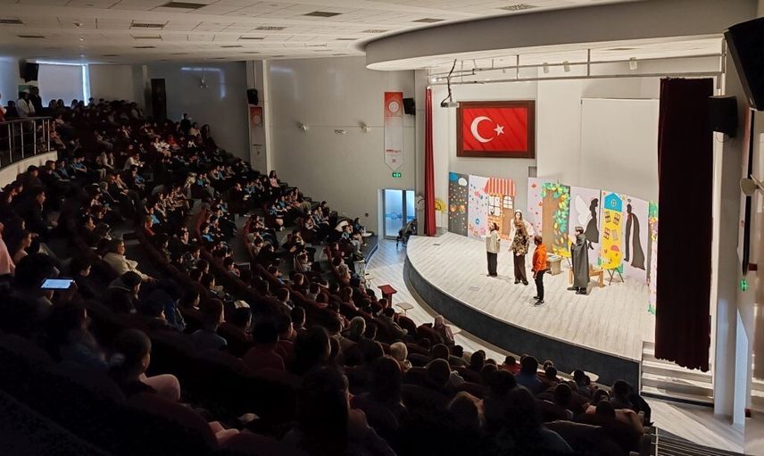 KÜTAHYA'DA DÜZENLENEN 'ÇEKMEZ KÖY' TİYATRO OYUNUNDA, ÖĞRENCİLERİN GÜNLÜK YAŞAMLARINDA GİDEREK ARTAN DİJİTAL ALIŞKANLIKLARI ELEŞTİREL VE MİZAHİ BİR ÜSLUPLA ELE ALINDI.