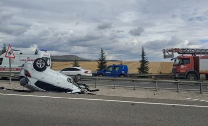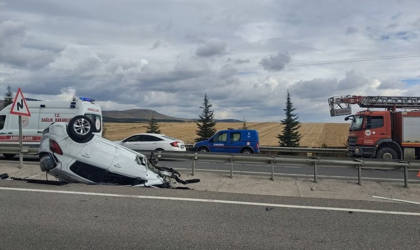 Kütahya'da devrilen otomobilin fırlayan tekeri karşı şeride geçerek başka bir araca çarptı