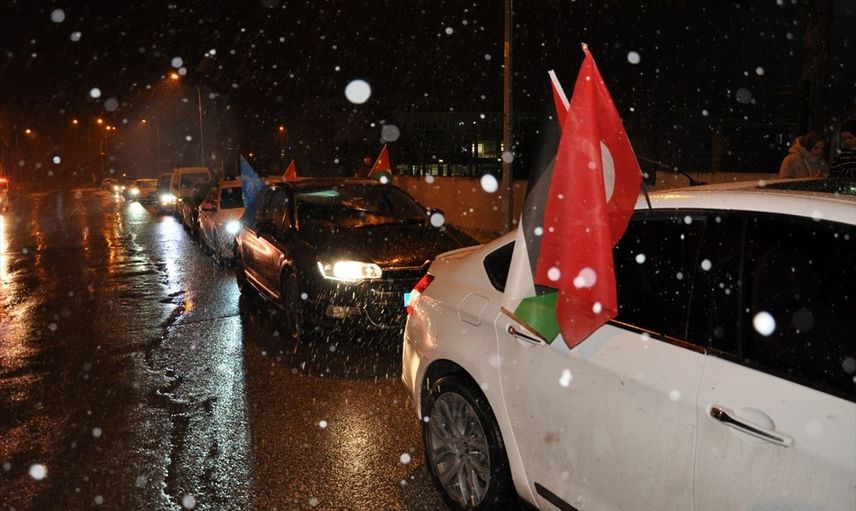 Kütahya'da, İsrail'in Filistin ve Gazze'ye yönelik saldırılarını protesto amacıyla konvoy oluşturuldu.