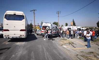 Kütahya'da işçi servisinin LPG yüklü tankere arkadan çarpması sonucu 35 kişi yaralandı.
