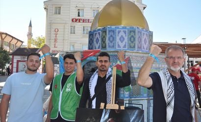 Kütahya'da, İsrail ablukasını kırmak ve insani yardım ulaştırmak hedefiyle Gazze'ye gitmek için yola çıkan Küresel Sumud Filosu'na destek için etkinlik düzenlendi. İHH Kütahya İnsani Yardım Derneği tarafından Zafer Meydanı'nda bulunan Kubbet-üs Sahra maketi önünde düzenlenen etkinlikte vatandaşlara mavi kurdele dağıtıldı.