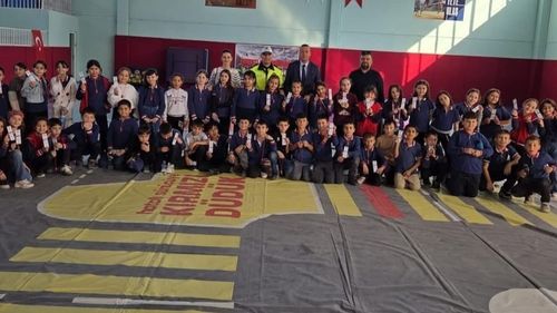 Kütahya'da Trafik Şube ekipleri, Seyyar Çocuk Trafik Eğitim Parkı'nda minik öğrencilere teorik ve uygulamalı trafik eğitimi vererek güvenli davranışlar kazandırmayı hedefledi.