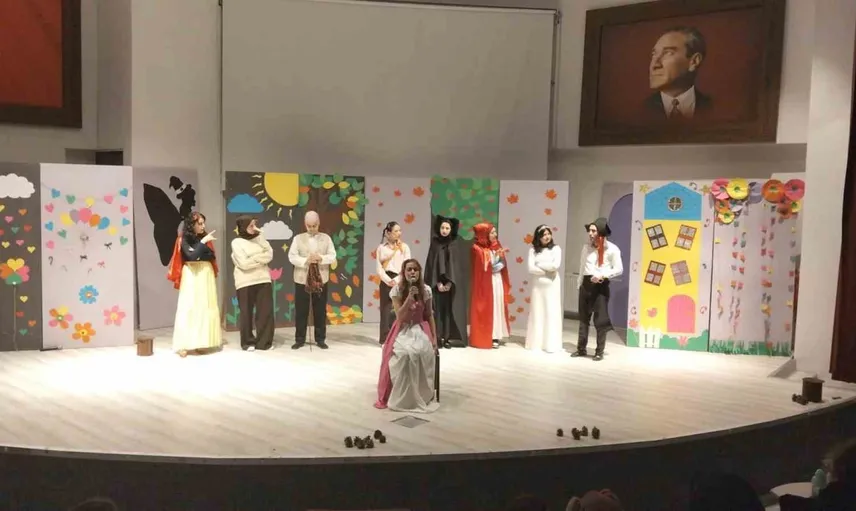 Türkçe Öğretmenliği 4. sınıf üniversite öğrencileri tarafından, 'Tiyatro ve Drama Uygulamaları' dersi çerçevesinde hazırlanan oyun, sahne tasarımı ve anlatımıyla dikkat çekti. Gösteri, planlama doğrultusunda iki seans halinde gerçekleştirildi.