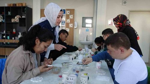 Kütahya'da özel öğrenciler çini sanatıyla buluştu: Bahattin Çini Özel Eğitim Meslek Okulu'nda boyama etkinliği