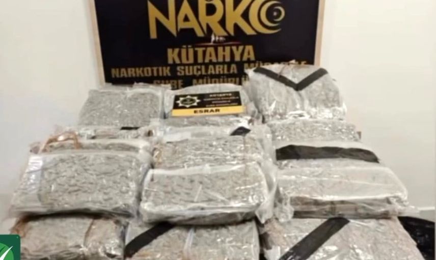 KÜTAHYA'DA UYUŞTURUCU OPERASYONU, 42 KİLO 582 GRAM ESRAR ELE GEÇİRİLDİ