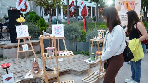 Kütahya'da kursiyerlerin yaptığı seramik kuş evleri, sanatseverlerle buluşturuldu.