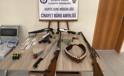 Kütahya'da sosyal medya hesaplarından silah ve mühimmat görseli paylaşan 11 şüpheli gözaltına alındı. Kent merkezi ile Tavşanlı ilçesindeki 16 adreste yapılan aramalarda 3 av tüfeği, 2 pompalı tüfek, 2 kurusıkı tabanca, bu silahlara ait çok sayıda fişek ile 133 uyuşturucu hap ve 4 gram sentetik uyuşturucu ele geçirildi.